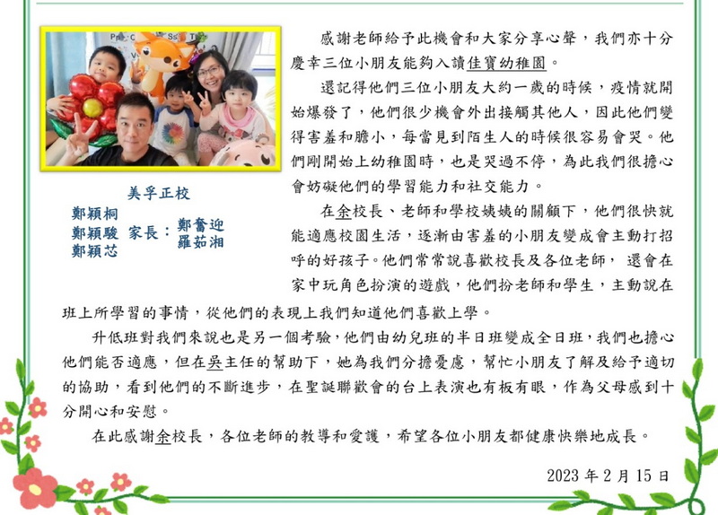 鄭穎桐,鄭穎駿,鄭穎芯 家長